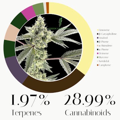 The terpene profile for this Ice Cream Cake suggests an experience that is soothing yet it carries an initial mental uplift thanks to its high concentration of Limonene - known for its potential to elevate mood, reduce stress, and provide a burst of positive energy. The secondary terpene, Beta-Caryophyllene, commonly found in black pepper, acts similarly to a cannabinoid by binding to CB2 receptors, potentially offering anti-inflammatory and pain-relieving effects that contribute to physical relaxation. Linalool lends a floral note and is often linked to calming, sedative, and anti-anxiety properties, promoting tranquility. Beta-Pinene and Alpha-Humulene both contribute anti-inflammatory potential, with pinene also linked to alertness, while humulene may act as an appetite suppressant. Finally, Alpha-Pinene offers a pine scent and is associated with enhancing focus, memory, and combating inflammation.