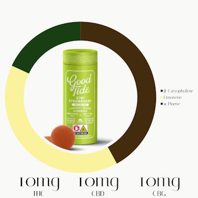 Kiwi Strawberry 1:1:1 THC|CBD|CBG Rosin Gummies by Good Tide | Edibles | 100mg (10mg Rosin THC x 10)