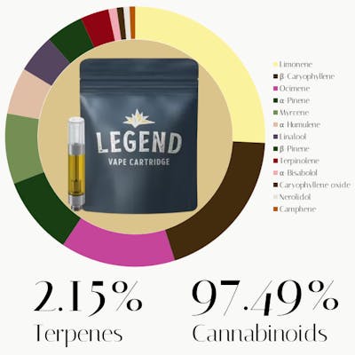 The terpene profile of this Tangy Lemon Kush vape suggests a vibrant, citrus-forward experience designed to elevate the mood while maintaining physical comfort. Limonene, the most abundant terpene, provides a refreshing burst of citrus that typically induces an uplifting, anti-anxiety, and cerebral high. This is balanced by beta-caryophyllene, which adds a spicy undertone and interacts with the body's receptors to offer anti-inflammatory support and a grounded sense of relaxation. Ocimene contributes a sweet, herbal note that is often associated with boosting energy and mental clarity, making it ideal for social or creative tasks. Alpha-pinene further sharpens focus by potentially counteracting short-term memory fog and providing a crisp, piney alertness. Myrcene adds a gentle, musky layer that rounds out the experience with a soothing body feel without immediate sedation. Finally, alpha-humulene reinforces the anti-inflammatory benefits and may act as a subtle appetite suppressant, ensuring a well-rounded and functional daytime session.