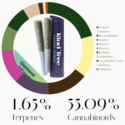 The terpene profile of this White Iverson diamond-infused pre-roll offers a complex experience that leans toward mental clarity and uplift. Alpha-Pinene provides an initial burst of energy and alertness. Limonene elevates the mood and eases anxiety with its bright, citrusy influence. Beta-Caryophyllene follows to ground the body, offering anti-inflammatory support and physical tension relief. Linalool introduces a calming, floral sedation that softens the nerves, complemented by Ocimene, which adds a refreshing, uplifting clarity. Finally, Myrcene anchors the experience, potentially leading to a soothing, couch-lock finish.