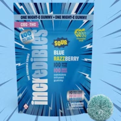 Incredibles Sour Blue Razzberry 1:1 THC:CBG Gummies 100mg single