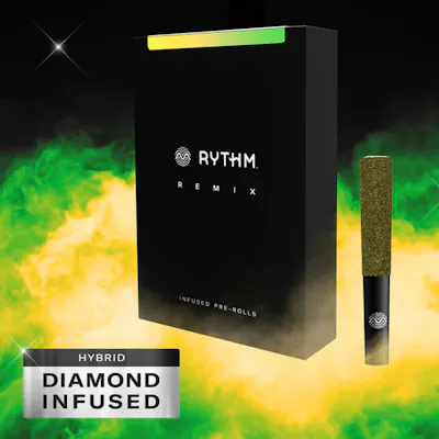 Trainwreck x Hawaiian This uplifting sativa-dominant hybrid strain comes on like a taste of the tropics, with a wave of pineapple flavor accented by hints of mango, pepper and pine. Remix pre-rolls feature RYTHM premium indoor flower double infused with THCa diamonds and kief for maximum potency and fine-tuned with 100% natural terpenes. Explore your taste in premium cannabis with RYTHM's curated lineup of expertly cultivated, award-winning strains. · Strain type: Sativa Hybrid · Potential effects: Uplifting, promotes emotional well-being · Dominant flavors: Pineapple, mango, pepper, pine · 1g Single