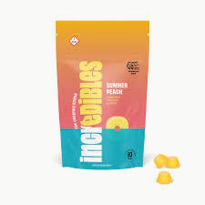 Summer Peach by Incredibles is a cannabis-infused gummy that delivers a bright, fruity peach flavor with a smooth sweetness. Designed for a consistent and reliable edible experience, Incredibles products are known for precise dosing and quality infusion. These gummies provide a mellow, long-lasting high that builds gradually, making them ideal for stress relief, relaxation, or a discreet way to enjoy cannabis without smoking. Effects vary depending on individual tolerance and dosage, but users often report a calming body buzz paired with a light euphoric lift.