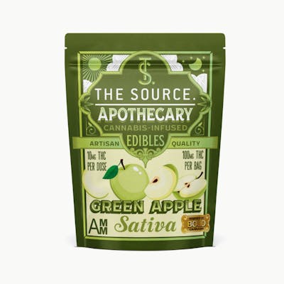 Pucker up with The Source Apothecary Green Apple Sativa Gummies. These sweet and tart gummies are the perfect remedy for daytime relief, boosting mood, and energizing and focusing the mind. Medicate the natural way with The Source Apothecary Gummies! Available in a cornucopia of flavors and made with a blend of high-quality cannabis distillate, powered by our friends at Bold Cannabis, and with botanically derived terpenes. The Source Apothecary Gummies are a delicious, affordable way to consume cannabis. The gummies made in The Source Apothecary are hand-poured by a small team of cannabis enthusiasts who are proud to pioneer a brand that is entirely Arkansan. At The Source Apothecary, we are always evolving, but no matter what - We promise to keep it craft. Effects: happy, energized, focused. Effects take about an hour to kick in and last between 3-4 hours. Ingredients & Dietary Info: vegan, gluten-free