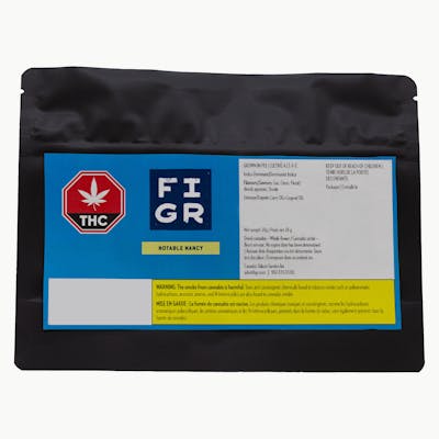 Notable Nancy, an indica-dominant strain created in California’s Orange County, is a cross between Larry OG x Legend OG. Starting with a sharp gassy inhale, this kush strain transitions to a sweet citrusy exhale, with both lime and orange notes. The taste is complemented by a floral aroma from its strong caryophyllene, limonene and myrcene terpene profile. A legendarily potent strain, these dense, yet large emerald buds, sparkle with a frosty layer of trichomes. FIGR dried flower products are hand selected to ensure dense, high-quality buds are in every package.