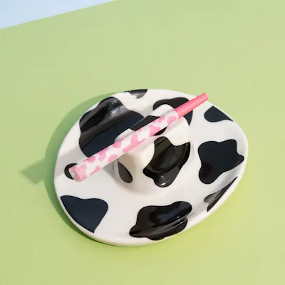This ashtray is fun to use and will be a conversation starter for your guests. The groove in the top of the hat holds your cigarette/joint, ash in the brim of the hat. Also makes a perfect trinket tray for your odds and ends. Made with ceramic and finished with a food safe glaze. Dishwasher safe. 5" x 5.5"