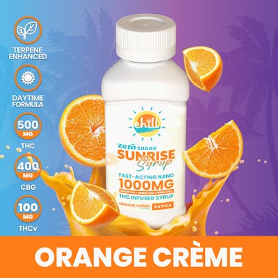Dosage: 500mg THC : 400mg CBG : 100mg THCv Activation Time: 5 Minutes – 15 Minutes 120ML | 4 FL OZ A bright, uplifting blend of sun-ripened oranges and smooth vanilla cream. The Energy Stack A well-balanced blend of THC, CBG, and THCV delivers that feel-good energy you need to kickstart your day without the caffeine crash. Boosted Energy Formulated with energizing THCV, this syrup fuels alertness and motivation to help you get your day in motion. Focus Say goodbye to morning brain fog. The CBG that powers this syrup brings the mental clarity and uplift you need to have a productive, successful day. Ingredients: Glycerin, Water, Xanthan Gum, Nanoemulsified THC Concentrate, Orange Cream Flavoring (Propylene Glycol, Ethyl Alcohol, Water, and Natural Flavoring), CBG, THCV, Beta-Caryophylllene, D-Limonene, Linalool, Sucralose, Citric Acid, Sodium Benzoate, Potassium Sorbate, Salt, Turmeric Extract
