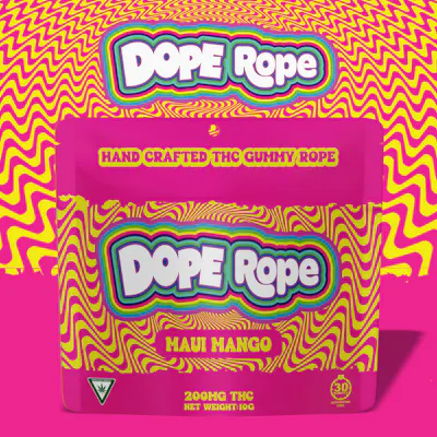 Get ready to elevate your edible experience with Dope Rope, the ultimate cannabis-infused treat designed for flavor lovers and THC enthusiasts alike. Bursting with the exotic sweetness of Maui Mango, each package delivers a tropical escape with every bite. At 200mg THC per package, Dope Rope is carefully crafted to provide a perfectly balanced dose for seasoned consumers or those looking to take their edibles game to the next level. Each piece is infused with premium cannabis extract, ensuring consistent potency and a smooth, uplifting high that’s as enjoyable as the flavor. Whether you’re kicking back on a lazy afternoon, exploring creative pursuits, or just looking to add a little tropical flair to your day, Dope Rope Maui Mango is your go-to edible for good vibes and great taste. Key Features: • Flavor: Juicy and tropical Maui Mango • Potency: 200mg THC per package • Experience: Uplifting and relaxing with every bite • Perfect For: On-the-go fun, chill sessions, or sharing with friends Indulge in the sweet escape of Dope Rope Maui Mango—your ticket to tropical bliss! ???