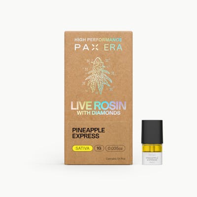 PAX Live Rosin with Diamonds A cult classic on the screen and an iconic Sativa on the scene, Pineapple Express deserves a round of applause. This legendary cultivar is a cross of Trainwreck and Hawaiian, renowned for its earthy, pine aroma and tropical, citrusy notes. Its uplifting effects inspire creativity, making Pineapple Express a worthy muse for your next artistic endeavor, DIY project or script for the next great stoner movie. Effects: Uplifting, Creative Terpenes: Limonene, Caryophyllene, Humulene