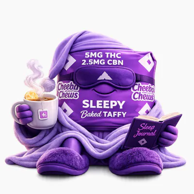 Chocolate Taffy 2.5mg CBN • 5mg THC Dream better and feel better with the calming effects of Sleepy Chews. Designed to quiet your mind and restore your body, these chews help you drift into deep, restful sleep. Indulge in the rich chocolate flavor as you wake refreshed and renewed.