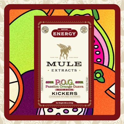 Pucker up for a sour blend of passionfruit, orange, guava in this brand new 1:2 ratio of THC to full-spectrum CBG that’s sure to have your head in the clouds. Comes as two Kickers; 100mg THC per package.