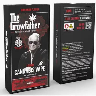 Maximum flavor, straight from the source. The Growfather’s Super Fruit Cryo Vape blends strain-specific live rosin terpenes from White Widow with a natural strawberry burst, delivering sweet, fruity clouds that hit like your favorite candy—think Skittles in vape form.