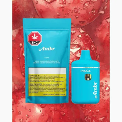 Ambr Cherry Sour Snowcone - experience a burst of flavour with this high-potency strain! Featuring bright berry and cherry notes, it's a treat for your taste buds in every puff. This strain is perfect for any occasion. Smooth, flavourful, and reliably strong, Ambr's Cherry Sour Snowcone Liquid Diamond Disposable is a staple for your stash!