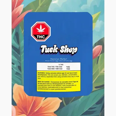 Colour outside the lines with Tuck Shop's Hawaiian Marker. This loud, tropical strain is a cross of Hawaiian Rain and Permanent Marker, bursting with bold notes of fruit, creamy gas, and just a pinch of floral funk.
