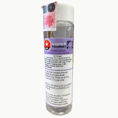 Claim the throne of tranquility with Violet Tourist's Triple Crown - the ultimate indica dynasty. This regal pack crowns 3 x 1.0g PreRoll Joints (PRJs) (3g total), all pure indica, forged for deep, uninterrupted surrender.
