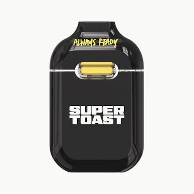 This All-in-One vape is packed with juicy flavour and infused with liquid diamonds. But... WTF?! What's the Flavour?! Here's a hint: sweet like candy, juicy like jelly, fruity, floral...and kinda bougie. Think you know it? Hit us up on social @supertoastworld with your guess. Super Toast grab n' go rechargeable vapes are always ready, no battery required. Our custom vape design is the stuff of ergonomic dreams, with the perfect palm-feel and super comfortable mouthpiece for long hauls and big fluffy clouds. Super Toast. Always Ready.