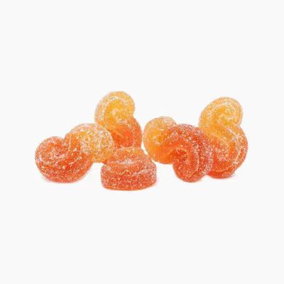 Peach Orange SOURZ by Spinach™ are balanced 1:1 THC and CBD gummies with sour crystals and natural flavours. Five large “S” gummies per pack with 2mg of THC and 2mg of CBD each.
