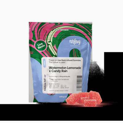 Terpene-rich edibles at an even tastier price. Introducing our live resin Watermelon Lemonade x Candy Rain gummies. These vegan gummies are infused with MFNY’s single-source, in-house produced Candy Rain live resin. We start with fresh-frozen flower buds, then use the hydrocarbon extraction method (plus years of experience and scientific precision) to deliver the purest plant extract. An extract that showcases the cultivar's naturally-produced, full-spectrum cannabinoids and remarkable natural terpenes. Candy Rain is known for its sweet candy flavor. To complement the Candy Rain cultivar, we add the minimum amount of sugar, plus watermelon lemonade flavors