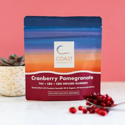 Introducing our Cranberry Pomegranate CBN - CBD- THC gummy. These gummies are perfect evening and nighttime gummies. These gummies are made with a signature all organic/natural ingredient profile and are bursting with cranberry and Pomegranate flavors! "CBN works by binding to both receptors where it’s thought to strengthen the function of anandamide, a neurotransmitter that plays a role in enhancing pleasure and motivation, regulating appetite and sleep, and alleviating pain."