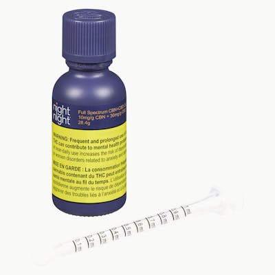 NightNight Full Spectrum CBN+CBD Oil contains 10mg/g of CBN, 30mg/g of CBD, and no THC, creating a new way to experience the synergistic effects of CBN and CBD in a familiar format. NightNight’s CBN+CBD formulation is combined with pharmaceutical-grade MCT and terpenes, resulting in a full spectrum functional oil ideal for nighttime use. All NightNight's CBN products are enhanced with CBD and other natural ingredients to create consumer-focused products of unparalleled quality and utility. NightNight products are developed and manufactured by Purileaf in Niagara Falls, Ontario. Each lot is tested by accredited laboratory to ensure quality and consistency.