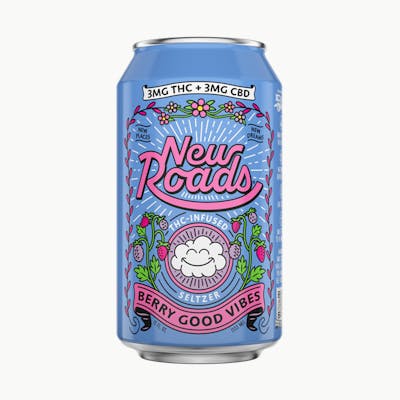 A New Road is waiting – are you ready to take it? New Roads Berry Good Vibes is a THC-infused seltzer bursting with fresh berry flavor. Blueberry, cranberry, and elderberry come together in a refreshing seltzer with a clean, crisp finish. Light, bubbly, and infused with 3mg THC and 3mg of CBD.