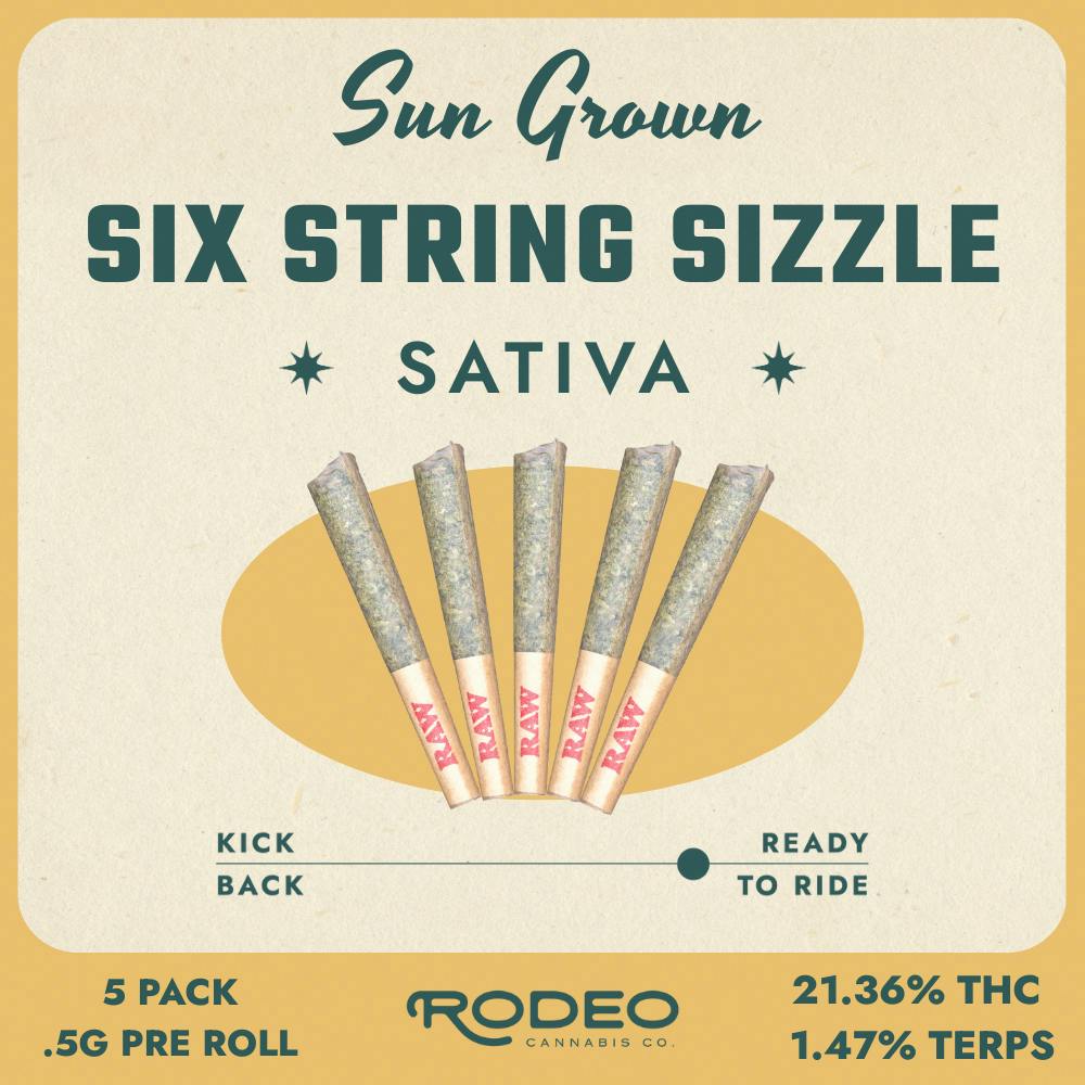 Rodeo Sun Grown Six String Sizzle (S) 0.5g 5 Pack Prerolls (C0070000369)