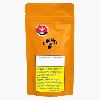 At Carmel, making a great pre-roll means starting off with top-shelf whole flower and producing in small batches. Each of our pre-rolls is hand-filled into a slim cone and packaged in a pocket friendly tin with a humidity pack. Our Animal Face pre-rolls are made with, well, Animal Face. Created by crossing the Face Off OG clone with an Animal Mints male, Animal Face is a ultra-potent and flavourful sativa dominant hybrid.