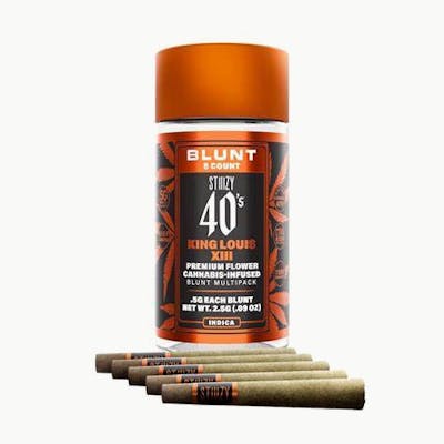 STIIIZY 40's blunts are rolled with 100% tobacco free, kief dusted hemp wraps. We’ve packed each infused blunt with premium, high quality flower so that every inhale is just as good as every exhale. STIIIZY 40's Blunts are reinventing the way you get high by being the introducing unique profile profiles & unmatched potency with live resin infusion. Pass the blunt.