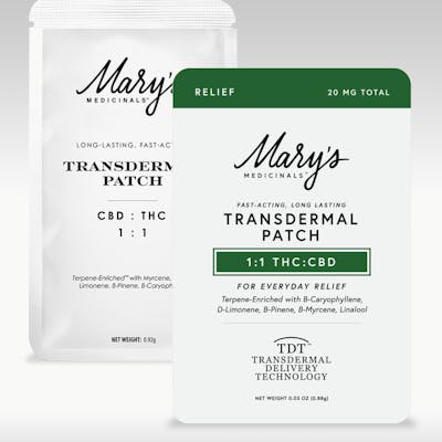Our Relief Transdermal Patch, with a 1:1 CBD:THC ratio, is designed to promote relief from common aches and pains in your daily life. Our Everyday Relief products are formulated with natural ingredients that provide systemic relief from daily stressors. Winner of the 2023 Michigan and SoCal High Times Cups, Mary’s Medicinals Relief Transdermal Patch is sure to be a winner in your book as well.