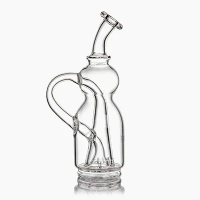 The MJ Arsenal Lasso Peak Top Attachment combines precision function with eye-catching design, featuring looping recycler pathways for ultra-smooth, flavorful hits. Handblown from premium borosilicate glass, it’s the perfect upgrade for your Peak or Peak Pro. Designed for maximum airflow and splash resistance with a sculptural, heady aesthetic. Retail Unit: One (1) Lasso E-rig Top Size: 6.1" x 3.0" Packaging Size: 6.4" x 2.7" x 3.5" Material: Borosilicate Glass Lasso-Styled Recycler Function