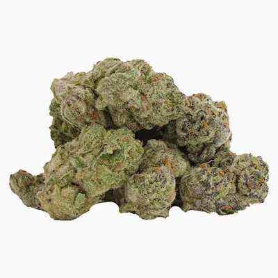 This all out, indica dominant strain crosses Compound Genetics’ 2022 Glitter Bomb with Rainbow Cheddar #5 to deliver buds that are as dramatic in appearance as they are in flavour and aroma. Flavours include gushing grape, sweet peach and kerosene gas undertones topped with a sweet candy kick. Top terpenes include myrcene, caryophyllene and linalool.