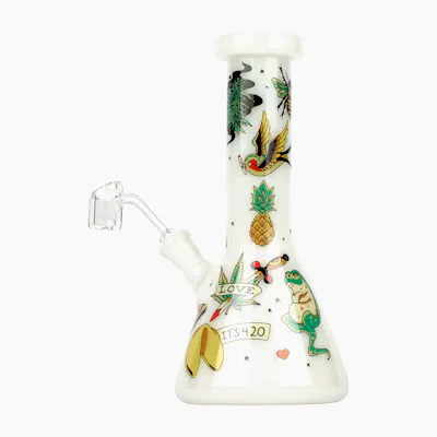 The Tattoo Beaker Tube from Red Eye Glass® includes a tattoo decal and is made using 100% borosilicate glass for improved temperature resistance and durability.
