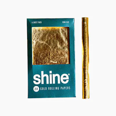The Shine® King Size papers are handcrafted from edible 24K gold. Made with a hemp blend base to ensure a smooth burn and natural flavor, these rolling papers are individually wrapped with one sheet per pack.