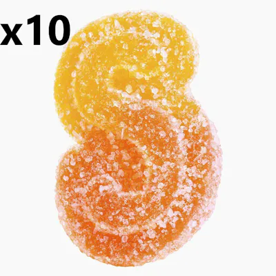 SOURZ by Spinach® Fully Blasted Peach Orange 1:1 CBD | THC gummies are packed with 10mg THC and 10mg CBD per piece. Enjoy 10 gummies per pack with 100mg THC and 100mg CBD total.