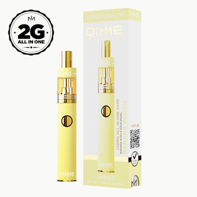 Banana Punch is a perfect hybrid strain that mixes Banana OG and Purple Punch. The delicious banana flavor is perfect for enjoying any time of day and will leave you feeling tingly, uplifted, and refreshed. Hints of pine and citrus balance out the sweetness of the banana making this strain irresistible and keeping you wanting more. Peel into this amazing flavor today! Powered by Dime Industries hardware, this device offers 3 heat custom settings (4.2v to 3.2v), pre-heat function, easy air flow, and is USB-C rechargeable. Give your buds a delicious treat backed by the industry's most powerful battery!