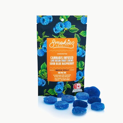 Sour Blue Raspberry 100 mg Indica Live Resin Fruit Chews by smokies