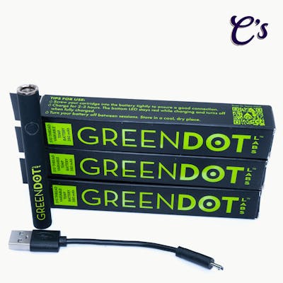 Custom-branded Green Dot Labs variable voltage battery. 510 thread compatible with 3 voltage modes offering settings to customize your vaporizer experience. Includes USB charging cord. Instructions for use included on box.