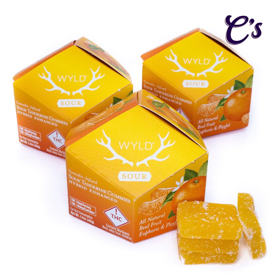 Wyld's Sour Tangerine Hybrid Enhanced gummies are made with real fruit and enhanced with botanical terpenes that assist in creating both euphoric and playful experiences, with a tart, punchy twist.