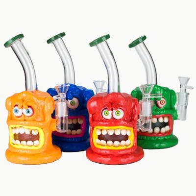 The Monster Face Bubbler is a handcrafted piece, meaning each one is truly unique. Available in a variety of colours, it features a tabbed clear bowl for easy use. The standout design includes funky eyes and a mouth full of teeth, adding a playful and bold touch to your collection. Perfect for those who want a fun, one-of-a-kind piece, the Monster Face Bubbler delivers both character and smooth performance with every puff.