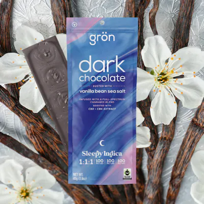 Rest easy with a bite of dark chocolate dusted with Jacobsen vanilla bean sea salt. Infused with CBD, CBN, and THC in a 1:1:1 ratio, the sleepy indica effects will keep you dreaming all night long.