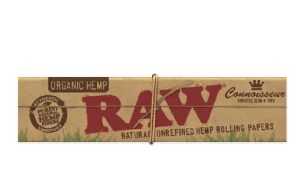 RAW Organic Hemp- Connoisseur King Size Slim Rolling Papers with Tips