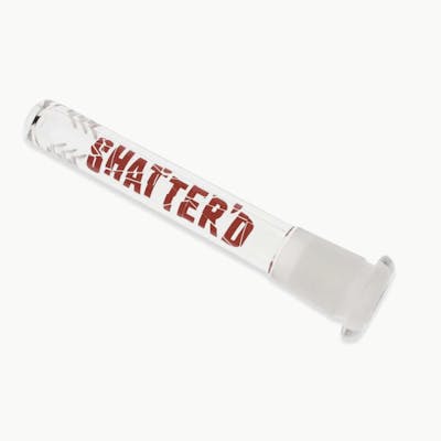 A standard glass stem by Shatter''d Glassworks. These stems are perfect as replacement parts for pipes, bongs and more. Use them with your current piece or as a part for a custom build. This stem has Shatter''d written down it in your choice of red or black. The stem length is measured the entire length of the stem including the wellspring (the opening where the bowl fits into). This downstem features an open end at the bottom of the downstem for increased airflow making it perfect for herb.