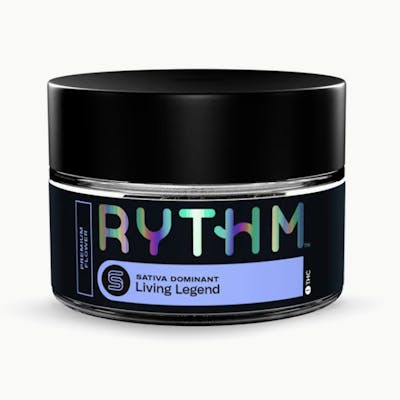 RYTHM Premium Flower offers a variety of expertly cultivated and meticulously cured strains with optimal potencies, lush aromas, and rich flavors. | Living Legend [orig. 24K x OG Fruit Smoothie] is a sativa strain that treats taste buds to bursts of sweet, citrusy, fruit-forward flavors and aromas.