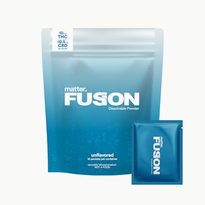 A world where you can make anything an edible. Your morning iced coffee, guacamole, late night pizza, ice cream, the options are endless. Enter Fusion Dissolvable Powder by matter. This new product from matter. is an unflavored thc powder created to be used for just about anything. With Fusion, you can make every moment of your day matter from morning to night. Each sachet contains 10mg of powder that gives the same effect whether you mix it in your water or mix it in your food. Take dosing cannabis to the next level and become your own infuser with Fusion by matter.