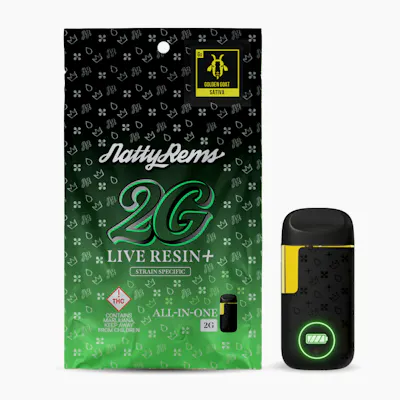 Strain Overview: Grape Cream Cake is a hybrid featured in Natty Rems’ 2g Live Resin All in One, offering a rich, dessert-inspired terpene profile with balanced, easygoing effects. This cultivar blends sweet grape and berry notes with creamy vanilla undertones and a subtle earthy finish, creating a smooth, flavorful inhale with a slightly gassy exhale. The experience typically begins with a gentle cerebral uplift that boosts mood and relaxation before settling into a calm, comfortable body feel. The balance between head and body effects makes it a versatile option for both social sessions and unwinding, while the live resin formulation enhances flavor and depth with every draw. Good For: • Relaxed afternoons or evenings • Mood elevation and light body relaxation • Fans of sweet, dessert-forward terpene profiles Product Overview: Natty Rems 2g Live Resin All in One delivers an amplified vape experience combining rich flavor with enhanced potency. Crafted from 100% single-sourced, fresh-frozen Natty Rems flower, this proprietary blend of pure live resin and high-purity distillate offers a smooth, terpene-forward inhale with extended duration and consistent performance. How AIO Is Commonly Used: All in One devices are designed for convenient use without additional accessories. Always follow product labeling and store according to packaging instructions. Explore more Natty Rems products available at our recreational dispensary in Grand Junction, CO.