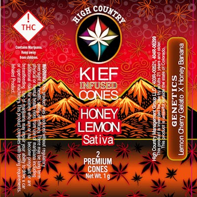 High Country Cones' Kief Infused Flower High Country Cones’ kief-infused flower starts with premium, organically grown cannabis and is enhanced with a coating of its own strain-specific kief — the resin-rich trichomes from the plant. This infusion boosts potency, intensifies flavor, and creates a smoother, more robust smoking experience with every hit. Strain Overview: Honey Lemon from High Country Cones is a sativa-dominant hybrid flower that delivers bright citrus flavor layered with smooth, honeyed sweetness. Its profile highlights zesty lemon notes with subtle floral undertones, creating a refreshing and lively smoke. The effects lean uplifting and energizing, offering a clear-headed cerebral boost that enhances focus, creativity, and mood while a light touch of body ease keeps the experience balanced. Ideal for daytime sessions, social outings, or productive afternoons, Honey Lemon brings a vibrant, feel-good lift. Good For: • Morning or daytime use • Boosting energy and focus • Social activities and creative tasks Company Overview: High Country Cannabis (operating under the High Country Cones brand) is a Colorado cannabis company and producer of handcrafted, award-winning kief-infused pre-rolls and premium flower. They focus on sourcing top quality strains and organically grown cannabis, with each batch infused with its own kief for enhanced potency and flavor. Their products are grown at high elevation in Fairplay, Colorado, and have earned multiple High Times Cannabis Cup People’s Choice awards for excellence. How Cannabis Flower Is Consumed: Cannabis flower is most commonly consumed by smoking or vaporizing. It can be ground and used in pipes, bongs, or rolled into joints or blunts. Vaporizing is another popular option that heats the flower without combustion, preserving flavor and producing a smoother, cleaner inhale. Effects are typically felt within minutes, making flower a convenient and controllable option for many consumers. Explore more High Country Cones product available at our recreational dispensary in Grand Junction, CO.