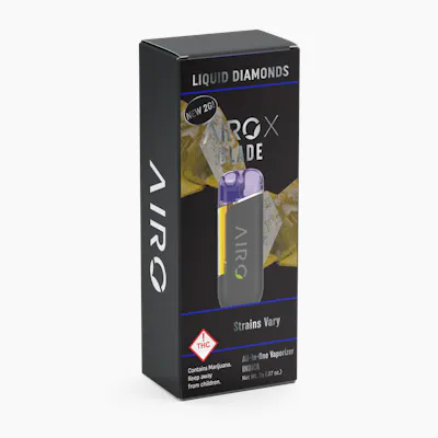 AiroX Liquid Diamond Series All in One by Airo: Step into the next level of purity and potency with AiroX Liquid Diamond All in One devices. This 2g AIO features a luxurious cannabis concentrate crafted through an advanced extraction process, delivering a terpene‑rich oil that stands in a league of its own. Each draw offers full, bold flavor with a smooth, clean inhale designed for a premium vaping experience. Liquid Diamond Experience: Liquid Diamonds are known for their exceptional potency and high terpene content, creating a powerful, full‑spectrum experience. Indica offerings in this line are especially sought after for their heavy‑hitting effects, delivering deep relaxation and a strong, long‑lasting body feel. With an abundance of High Terpene Extract (HTE), each hit is packed with rich flavor and aromatic depth while maintaining a smooth, refined finish. Why AiroX Liquid Diamonds: Airo’s Liquid Diamond Series is built for consumers seeking elevated quality and intensity. By combining advanced extraction with terpene‑rich formulation, these devices deliver consistent performance, bold flavor, and next‑level potency in a convenient, easy‑to‑use format. Product Overview: Brand: Airo Type: Indica (varies by strain) Format: AiroX Liquid Diamond All in One (AIO) Weight: 2g Extraction: Liquid Diamonds (HTE‑rich) How AIO Is Commonly Used: All in One devices are designed for convenient use without additional accessories. Always follow product labeling and store according to packaging instructions. Explore more Airo products available at our recreational dispensary in Grand Junction, CO.