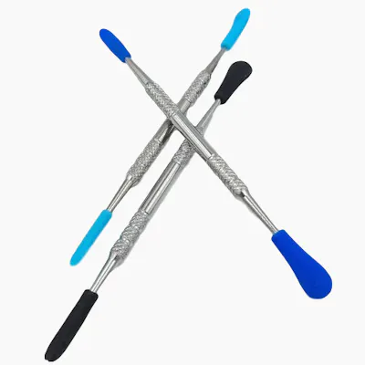 Metal Dab Tool with Silicone Tips. Handle wax, oils, and concentrates safely, and efficiently, with this silicone-tipped tool. The silicone tips are formulated to work safely up to temperatures of 450F. The tips are removable if you need/prefer to use the metal tips directly. The silicone tips allow you to safely maneuver your wax, oil, and concentrate without damaging your heating element the way you can with metal tips, depending upon your usage.