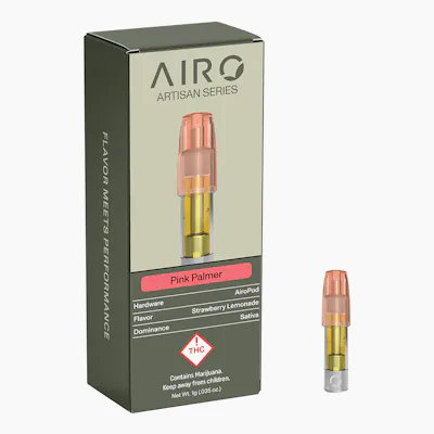 Enjoy cheerful summer bliss with the Artisan Series Pink Palmer. As you inhale, taste crisp and sweet freshly squeezed strawberry lemonade with a side of high vibes. As you exhale, put on your shades, embrace the lively, spirited you, and feel ready to play in the sun. Pink Palmer is a Sativa that brings out your inner spunk. The you who’s unapologetically fearless and always ready for the next adventure. AiroPod Cartridges are only compatible with the AiroPro and AiroSport Vaporizer.