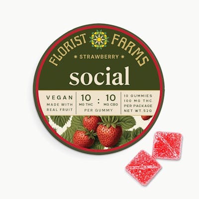 Florist Farms | Vegan Gummies | Social - Strawberry | 10ct | 100mg